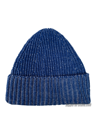 Ribbed beanie with wider ribs on the high turn-up. Made in Italy