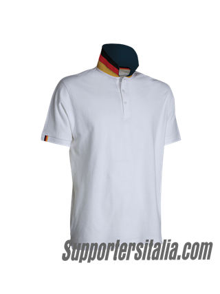100% combed cotton. 3 buttons. Collar band and slit in contrast. Back of the collar with the flag
