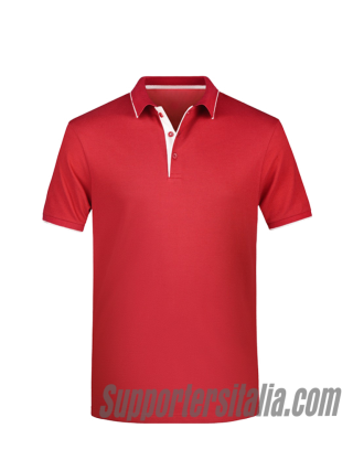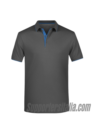 Polo 100% ring-spun combed cotton. Men's polo shirt in high quality piqué fabric, ribbed neck and sleeves, contrasting stripes on the neck, collar and internal buttoning with contrasting colors, tone on tone cuffs, side vents, 3 buttons.