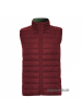 Quilted vest with feather feel padding. Two side pockets with zip. Elasticated hem on waist and armholes. Contrasting internal lining. Lightweight and foldable garment.