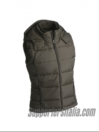 Quilted vest with detachable hood. Matte surface with light TPU layer. Water repellent and windproof.