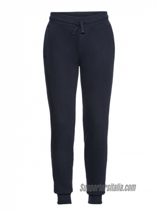 Pantalon coupe contemporaine, deux poches passepoilées du même tissu avec zip invisible, poche arrière avec patch, cordon plat à la taille avec boutonnières, poignets et taille côtelés, intérieur en peluche.
