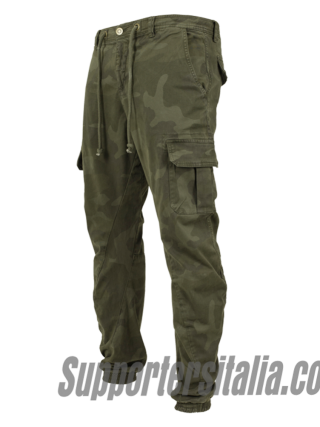 Sweatpants elastici di alta qualità con tasconi cargo e texture mimetica.