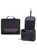 Belleza de viaje. Tejido sin PVC. Numerosos bolsillos internos con cremallera, algunos de malla. Bolsillo exterior con cremallera. Mango externo. Gancho interior para colgar.