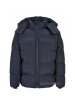 Chaqueta acolchada con capucha. Interior acolchado, super suave y envolvente. Corte cómodo, puños elásticos internos y capucha acolchada con cordón. Tejido exterior ligeramente brillante. Capucha desmontable con cremallera.